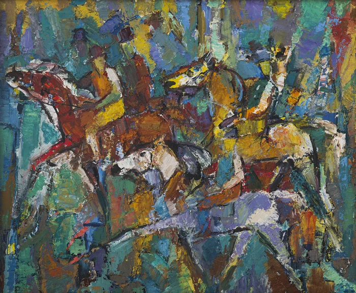 A Walk, one of the first four paintings that Hoffman acquired, is a masterful interpretation of an important historical genre – Sporting Art – which touches on themes of power, authority and grace. Chetkov’s work moves beyond the notion of a single authority mounted on a horse. A group of riders, shimmering with movement, emerge from the canvas. Beyond the wonder of its composition, it illustrates that power is something to be shared and is always evolving.