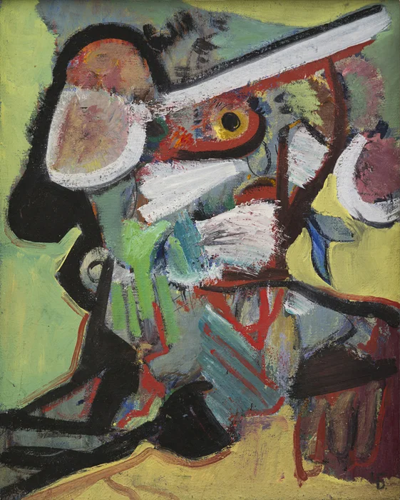 Self-Portrait in a Top Hat characterized all that perfectly. The red line of crimson on his brow, powerfully supported by the cobalt blue in his eyes and imposing nose; the playful balance of peach and mint green in the top hat; the blocks of yellow, both a part of his face and of its surround, demonstrate the intuition and skill of a great colorist. Black accents and suggested outlines balance the compositional color without confining the face and highlight a fluent and dynamic brush strokes that gave the painting depth. Suggestive of modern masters before him, referencing Klee’s blocks of balancing color and Picasso’s distortion of features, Chetkov’s piece is less controlled, lacking overt statements of any school, created with a unique internal coherence. For Chetkov the essence of a subject, and how one experiences it in that moment, is more important than any specific rendering or exact likeness. He was trying to authentically express the complex nature of something.